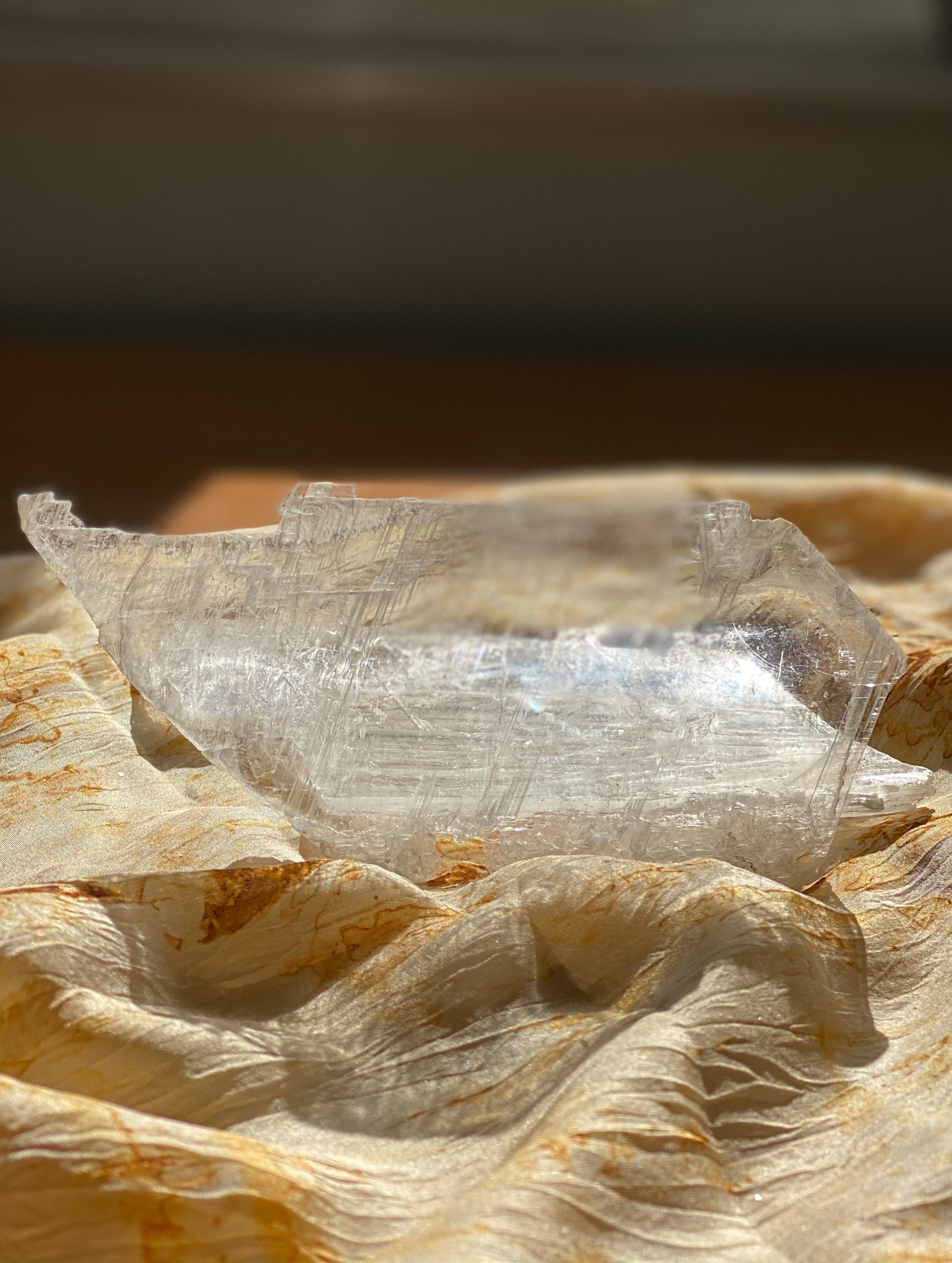 純淨透明的結晶石膏石,頻率振動精細而且十分之強大,能完全融合在環境之中;能非常有效地清潔我們的氣場,徹底清除阻塞的負面能量。每日用的手錶、手飾放在石膏石上也可以有效得到淨化。
